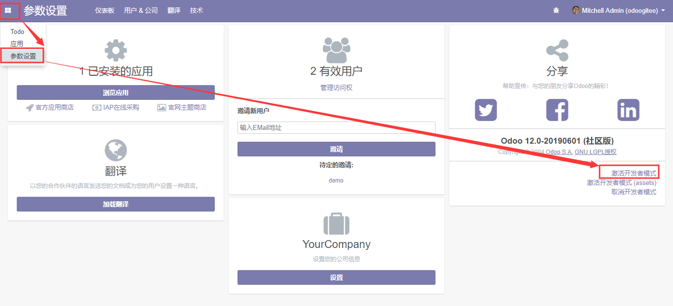 - 在odoo中,如果你修改了xml文件,你所做的修改要升级应用后才能生效;