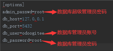 2.在 odoo源码/setup/odoo.conf中添加odoo配置,内容如下: