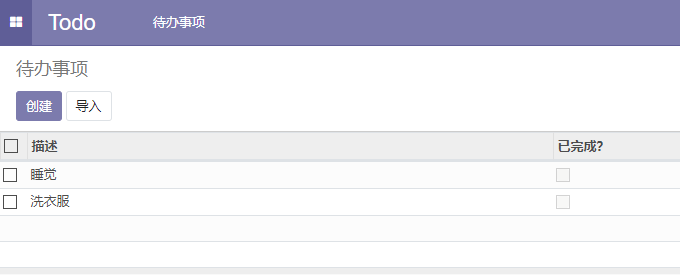 至此,我们可以点击左上角的下拉菜单并可以点击todo应用来进入应用,我们可以看到如下内容: