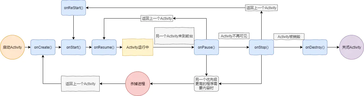 异常情况下系统配置发生改变时导致Activity被杀死并重新创建、资源内存不足导致低优先级的Activity被杀死