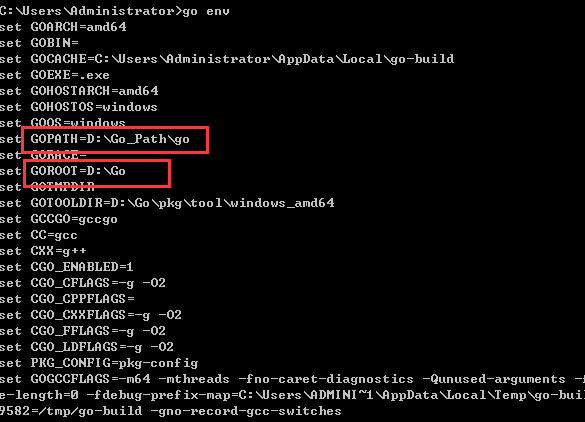 配置好之后,通过 go env 命令来查看go环境是否配置正确: