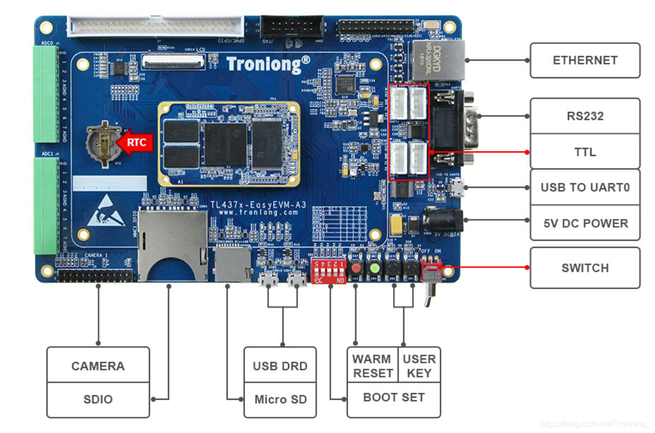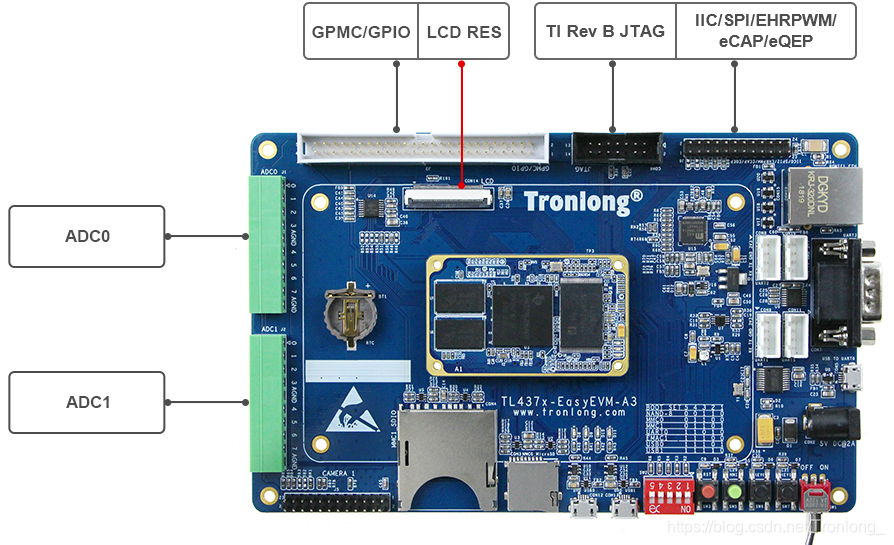 评估板接口资源丰富,引出千兆网口、CAMERA、GPMC、LCD、USB等接口,方便用户快速进行产品方案评估与技术预研。