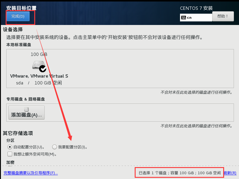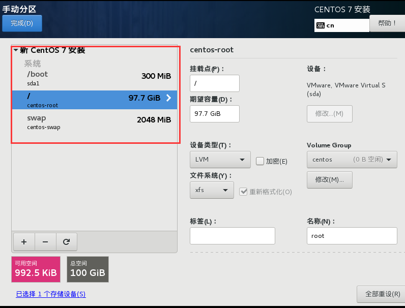 注意:/boot+/swap+/=分配给虚拟机磁盘的空间大小。在填写分区大小的时候不要写任何单位,系统会自带单位。