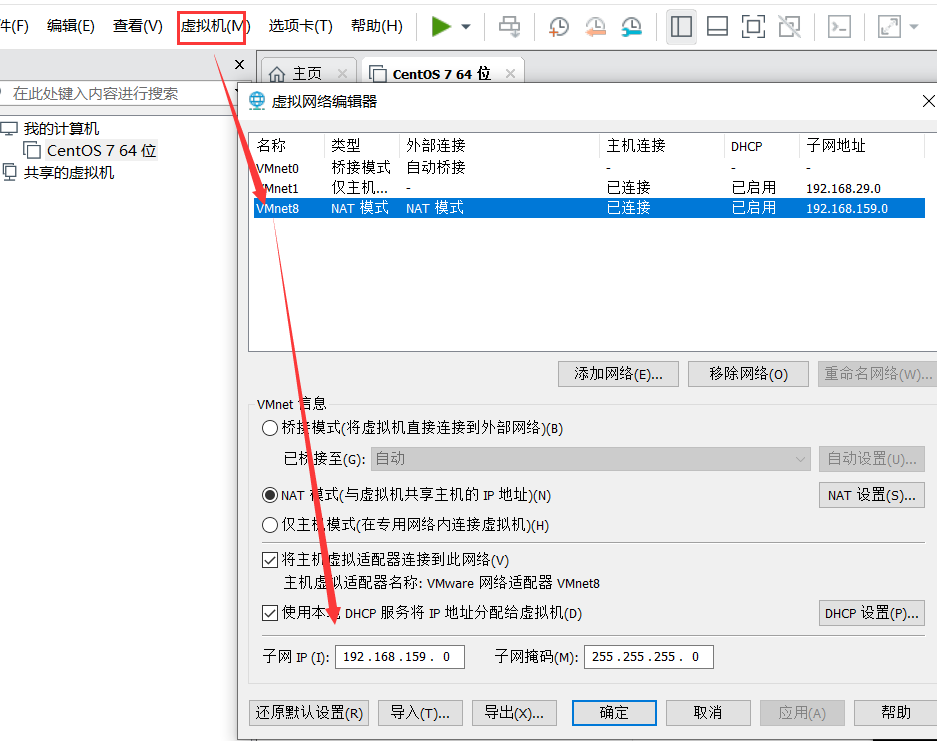 首先要查看虚拟机配置的虚拟局域网的网络号,子网掩码和网关 要根据这三样来配置Linux的IP地址
