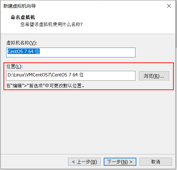 要选择虚拟机里边Linux安装的位置,方便备份以及转移。