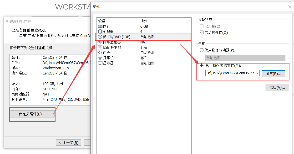 配置好虚拟机参数,安装centos7之前要设置挂在的Centos7ISO映像文件位置,否则打开之后启动虚拟机之后无法找到Centos的镜像也就无法安装Linux了