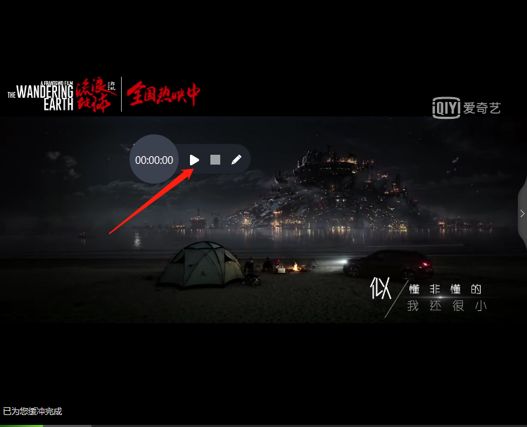5、再次进入爱奇艺视频,播放至自己想要录制的片段,点击悬浮框上的开始即可开始录制,点击结束按钮即可完成录制。