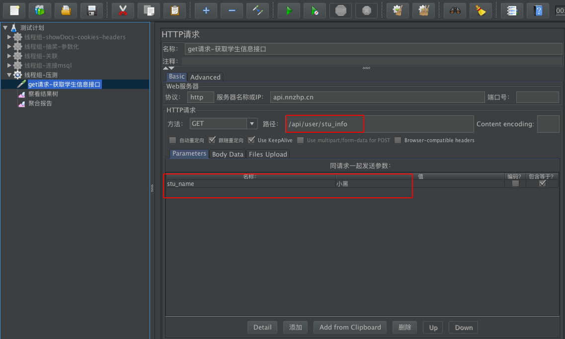 一、先使用Jmeter写好压测接口的脚本,如图所示: