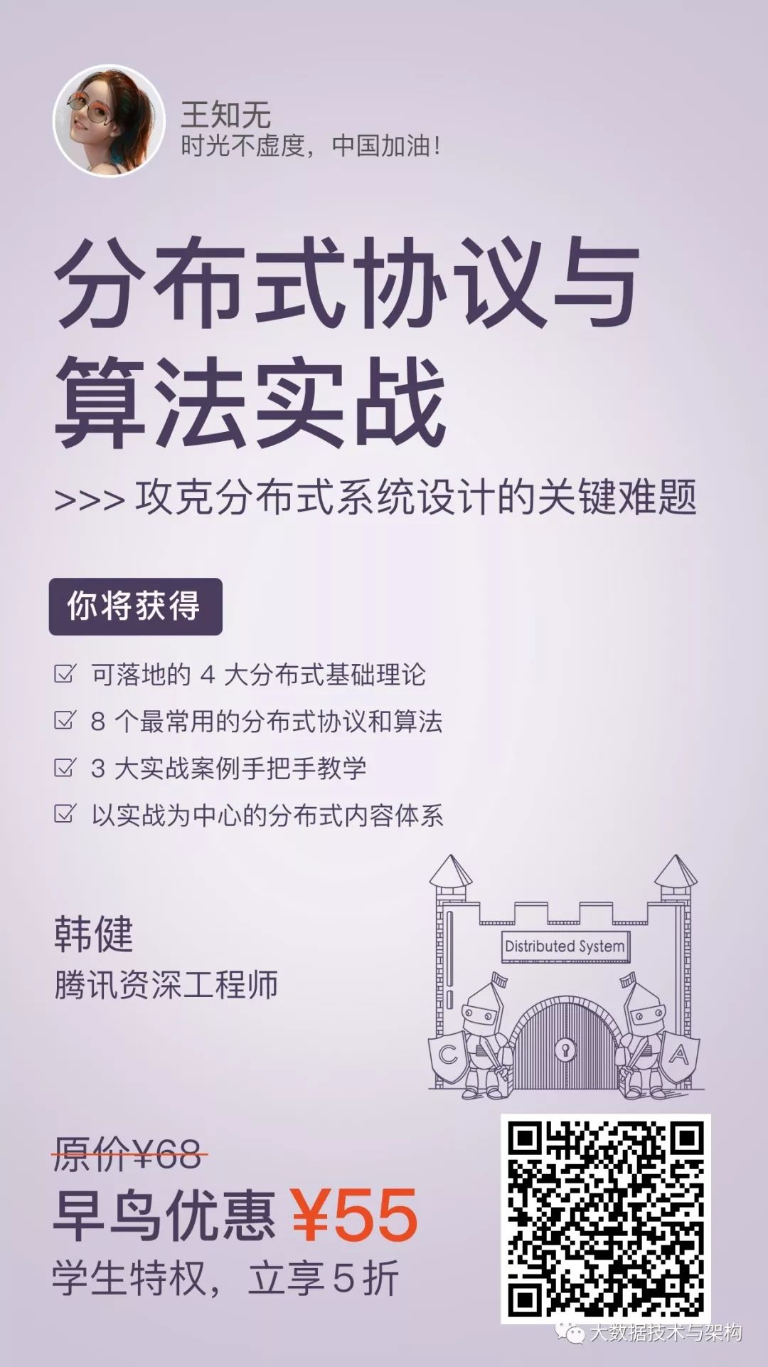 在专栏中,他分享了自己支撑海量互联网服务中的分布式算法实战心得,让你学完就能在工作中根据场景特点,灵活地设计架构和运用分布式算法,开发出适合该场景的分布式系统,对架构设计的理解,也会更上一层楼。