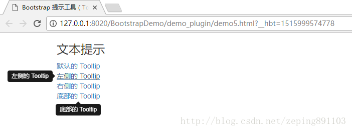 <a href="#" class="tooltip-test" data-toggle="tooltip" title="左侧的 Tooltip" data-placement="left">左侧的 Tooltip</a>