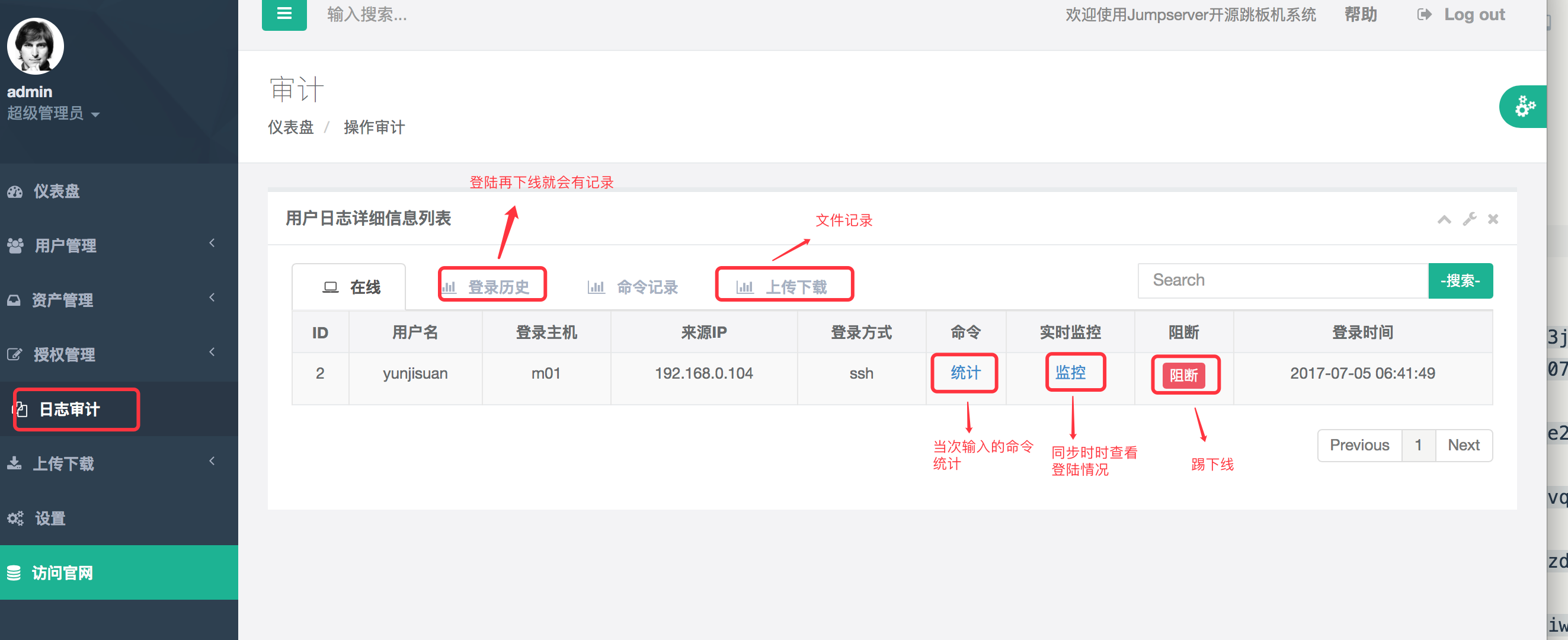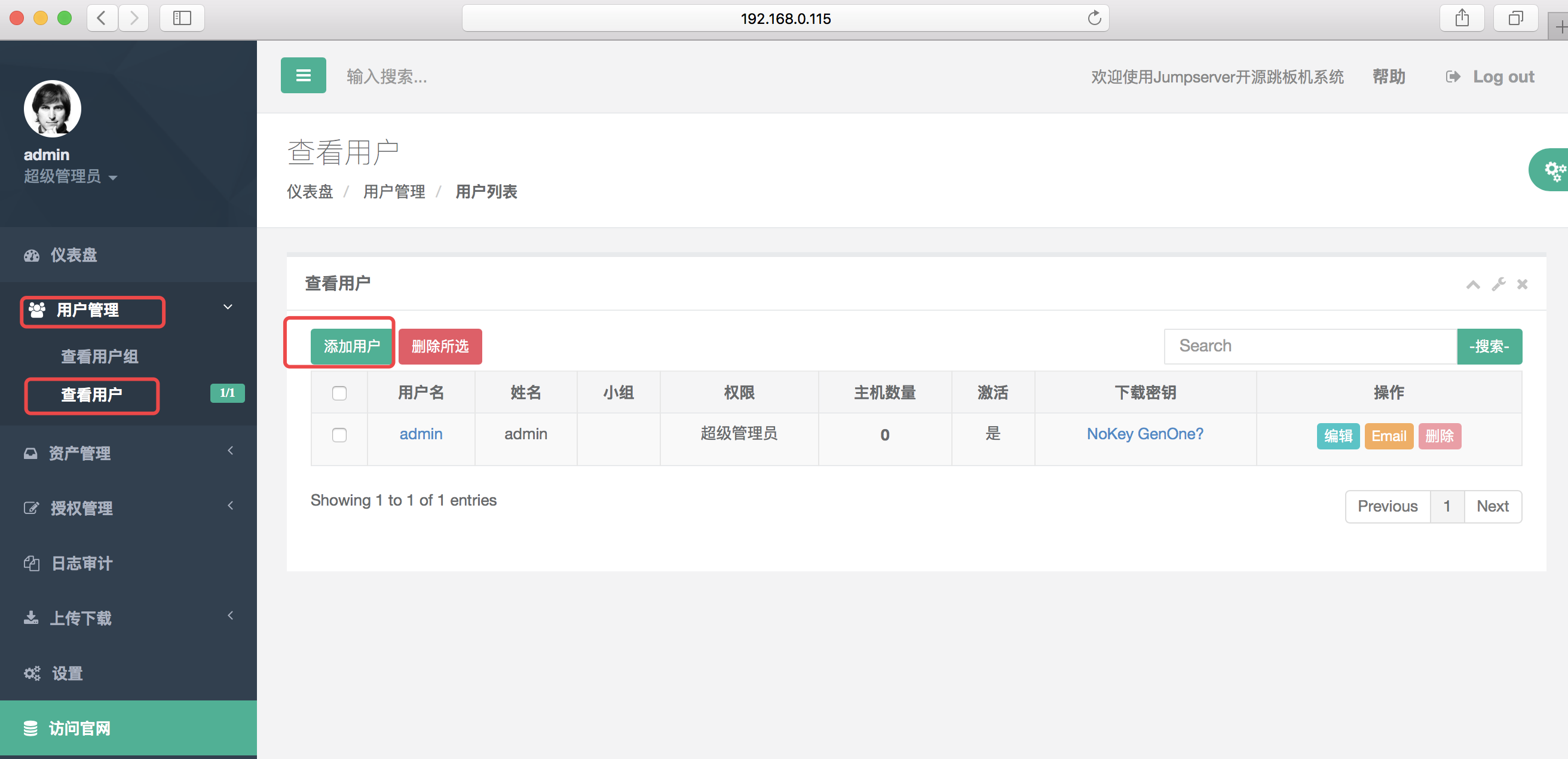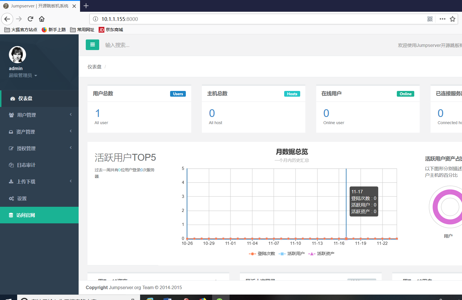 经过以上操作后,跳板机jumpserver就搭建成功了。