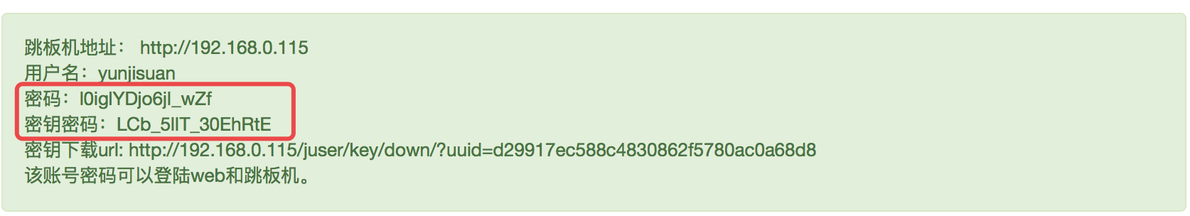 注册用户以后会出现下图所示:登陆密码及密钥密码,请务必作记录
