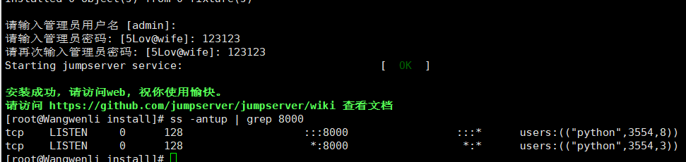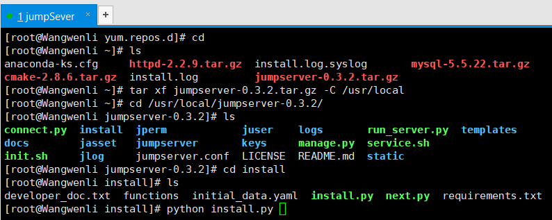 特别注意的是:jumpserver的包绝不能解压在root目录里,会出现权限问题。