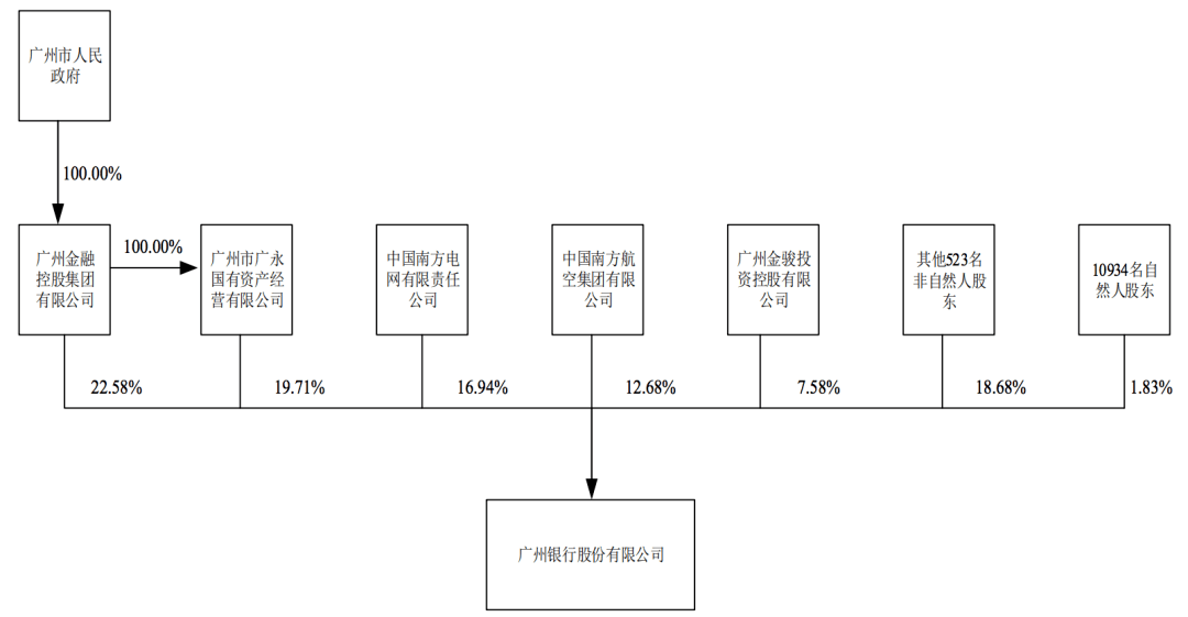 截至目前,广州金控直接持有广州银行股份22.58%,通过广永国资持股19.71%;南方电网持股16.94%,南航集团持股12.68%,广州金骏投资控股有限公司持股7.58%。其中,广州金控合计持股42.3%,为该行控股股东。