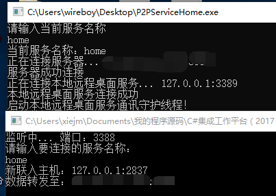 3.主控端启动,发送要连接的“被控端服务”名称,例如:Home