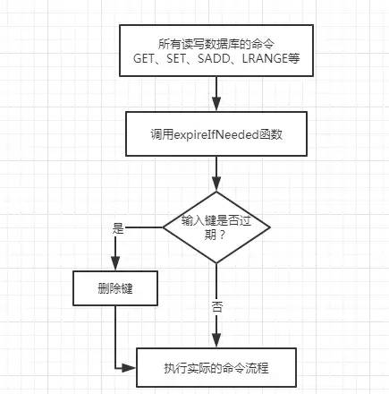 过期键的惰性删除策略由expireIfNeeded函数实现,所有读写数据库的Redis命令在执行之前都会调用expireIfNeeded函数对输入键进行检查: