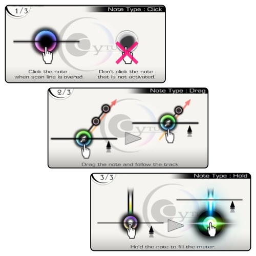 Cytus共有五种判定,从好到坏依次为:彩PERFECT、黑PERFECT、GOOD、BAD、MISS。