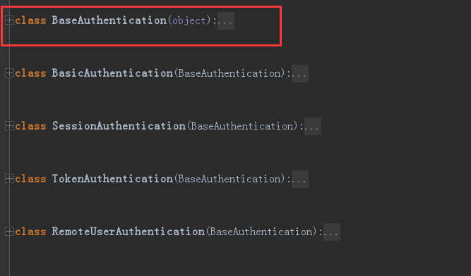 rest_framework里面内置了一些认证,我们自己写的认证类都要继承内置认证类 "BaseAuthentication"