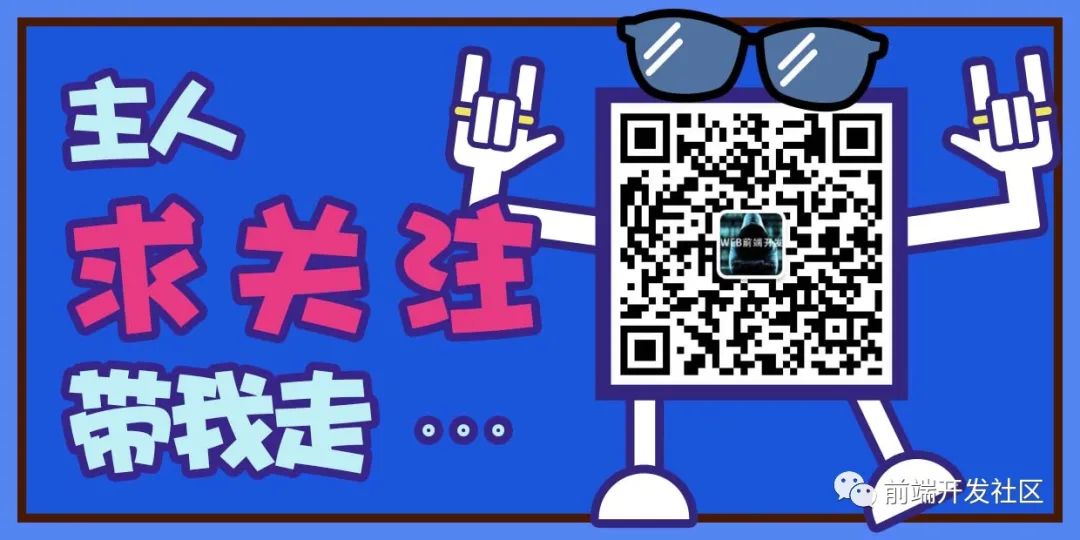 “关注 前端开发社区 ,回复“ 1” 即可加入 前端技术交流群,回复 “ 2” 即可免费领取500G前端干货!