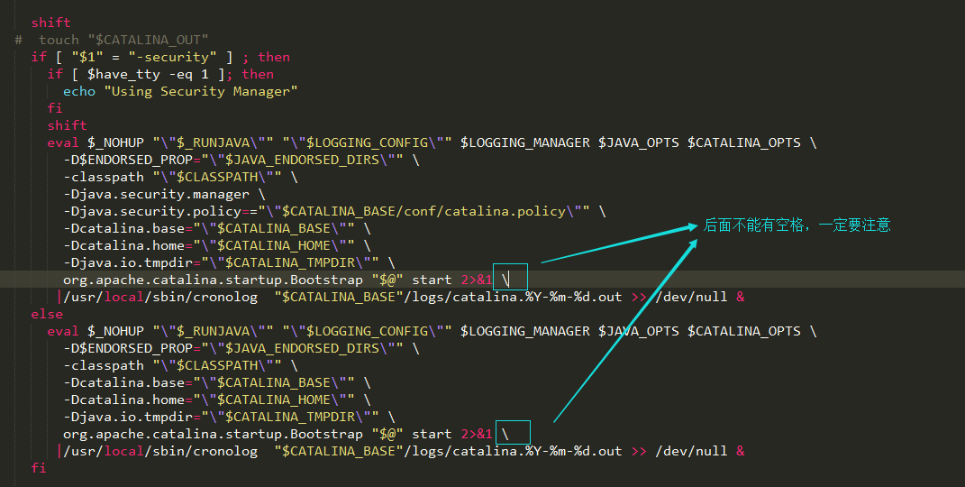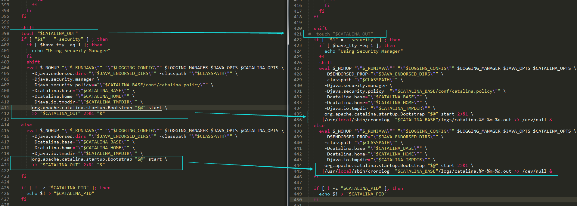 |/usr/local/sbin/cronolog "$CATALINA_BASE"/logs/catalina.%Y-%m-%d.out >> /dev/null &