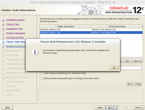 | [root@salman1 ~]# ping salman1 [root@salman1 ~]# ping salman1-priv [root@salman1 ~]# ping salman2 [root@salman1 ~]# ping salman2-priv |