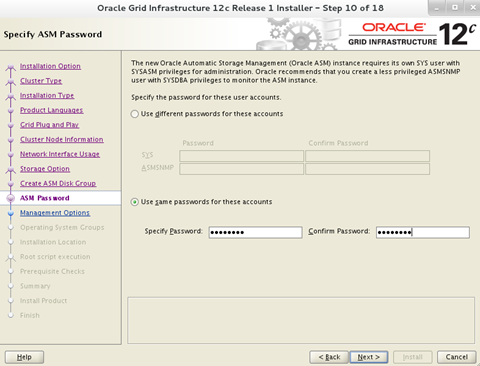 为用户SYS(SYSASM )提供密码,然后单击下一步