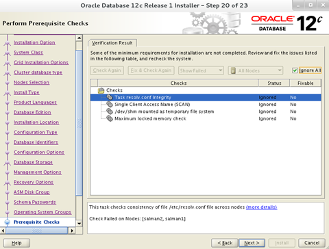 ii)就像Grid Infrastructure安装一样,OUI在识别 /dev/shm 文件系统的实际值方面有一个问题,同样发生在这里,所以我可以忽略它。