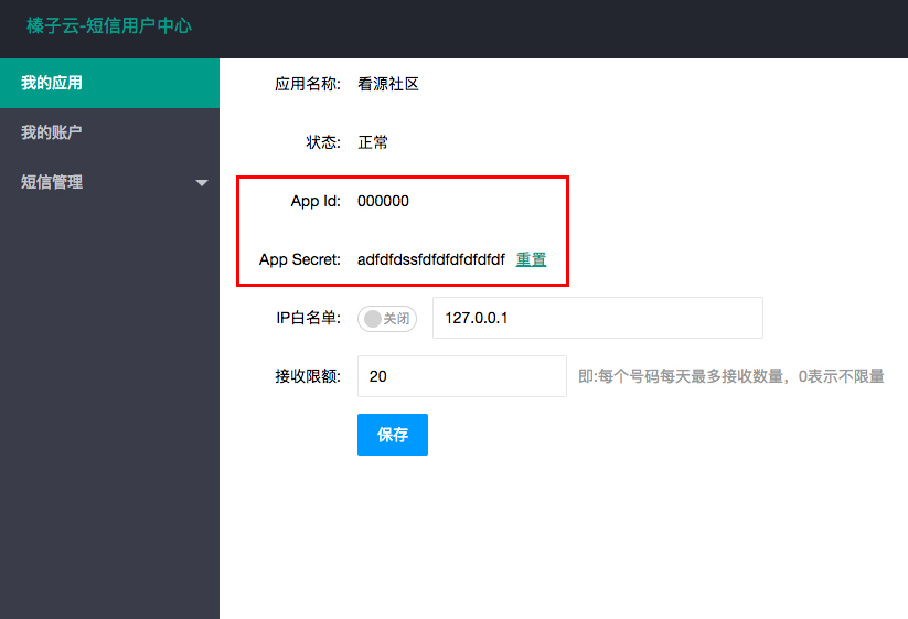 使用测试账号登录管理后台获取appId、appSecret, 地址: http://sms.zhenzikj.com/zhenzisms_user