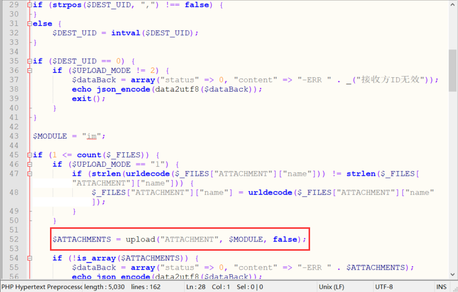 要上传首先需要绕过登陆验证,在本系统中auth.php是登陆验证的相关逻辑,但在upload.php未修复前,如果$P非空就不需要经过auth.php验证即可执行后续代码。利用此处逻辑漏洞可绕过登陆验证直接上传文件。