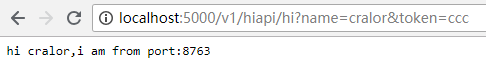 地址栏输入http://localhost:5000/v1/hiapi/hi?name=cralor&token=ccc,显示