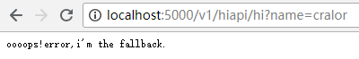 重启eureka-zuul-client,关闭eureka-client的所有实例,访问http://localhost:5000/v1/hiapi/hi?name=cralor,浏览器显示