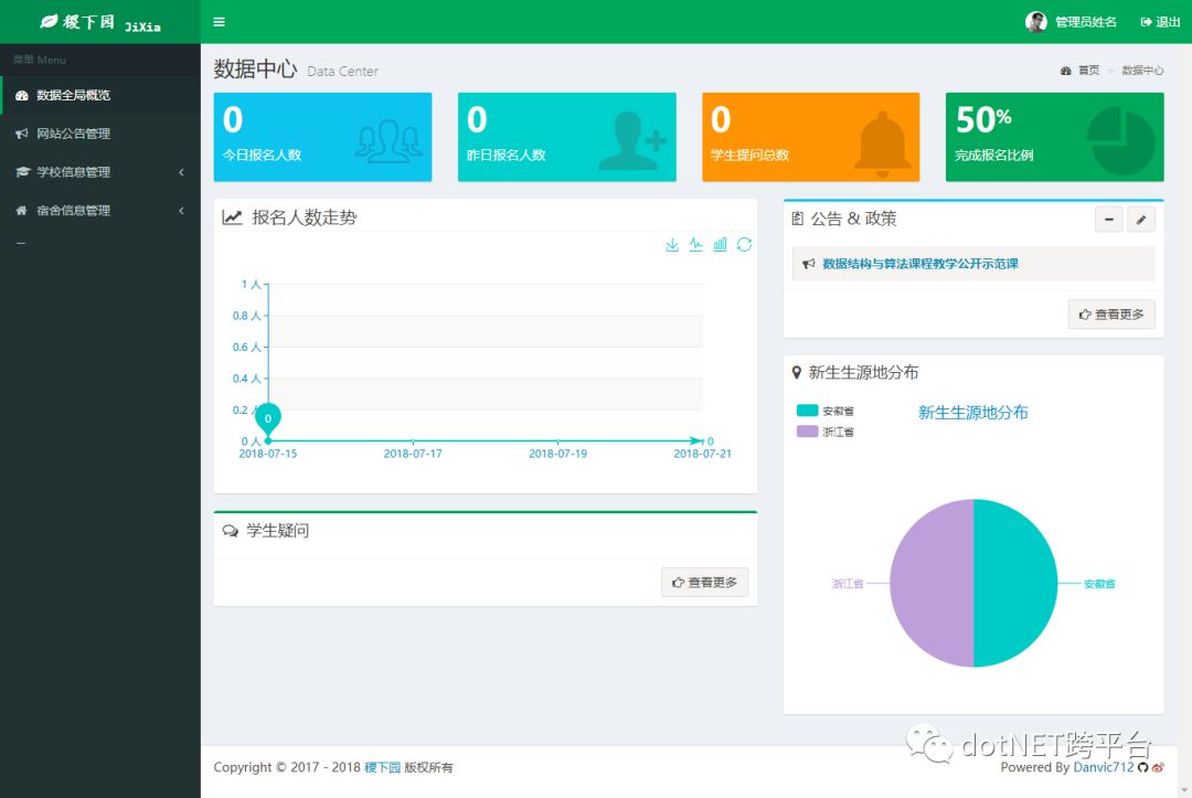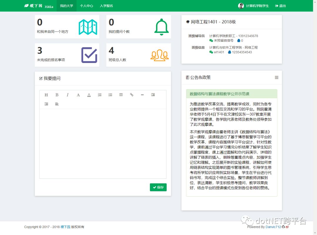 嗯,有点扯远了。这个MVC项目是我的毕业设计,虽然写的比较烂,而且当时为了赶紧写完,代码的冗余程度有点高,但还是希望能给一些准备入门ASP.NET Core MVC的童鞋提供些借鉴吧。代码我放到Github上了,源码地址https://github.com/Lanesra712/Danvic.PSU,欢迎大神们拍砖,指出不足处。