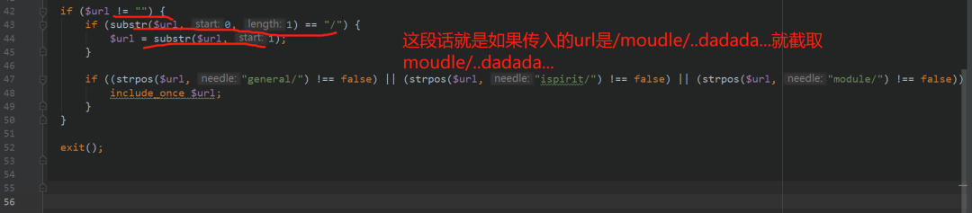 然后走到strpos,可以看到如果出现general/,ispirit,module/就会触发文件包含构造payload