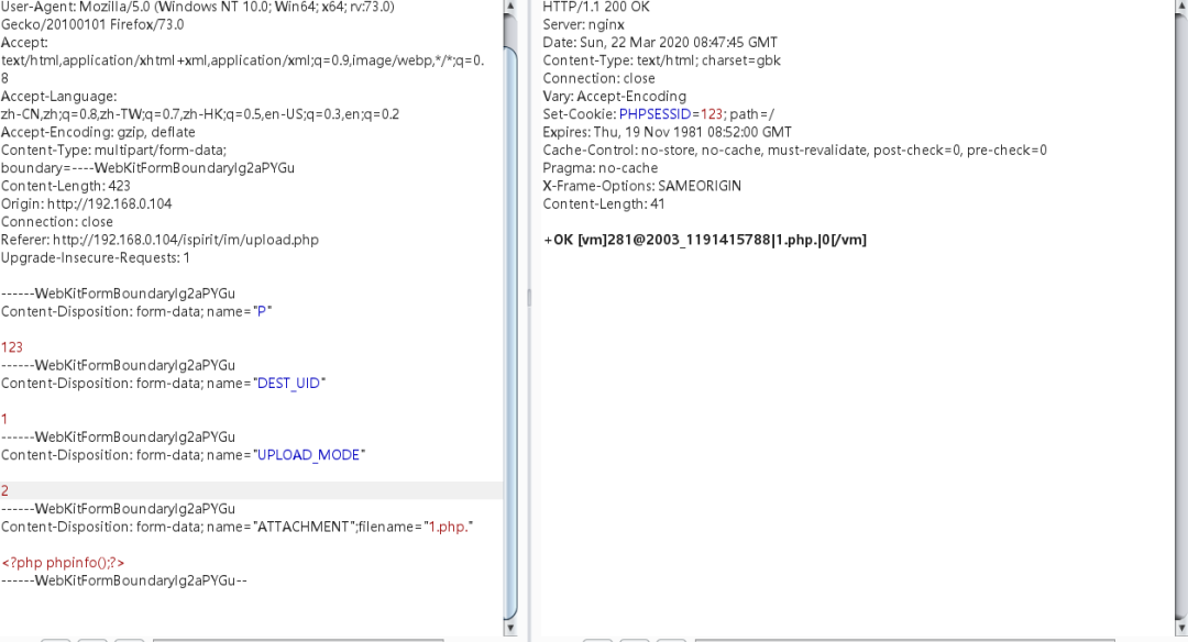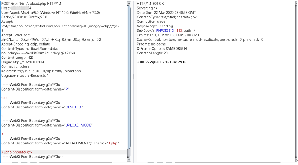 该漏洞主要是通过绕过身份验证的情况下上传文件,然后通过文件包含漏洞实现代码执行