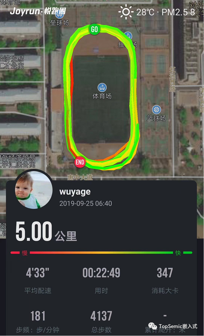 下面是最快的一次5KM跑,不过记录还停留在2年前,至今未被自己打破,😓