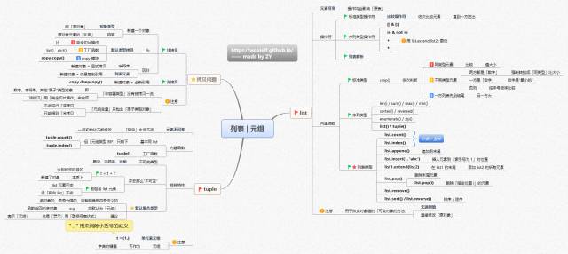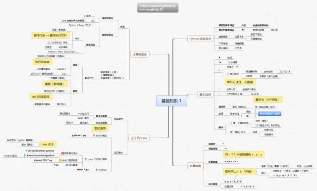 本文按顺序依次展示了以下内容的一系列思维导图:基础知识,数据类型(序列,字符串,列表,元组,字典,集合),条件&循环,文件对象,错误&异常,函数,模块,面向对象编程。