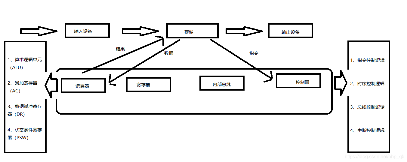 组成:指令控制逻辑、时序控制逻辑、总线控制逻辑、中断控制逻辑。