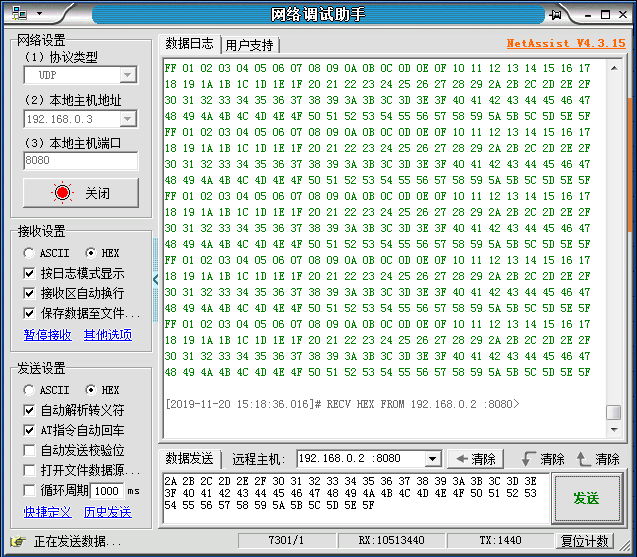 对助手的不再截图,因为没有参考价值,只是作为UDP连接的客户端。