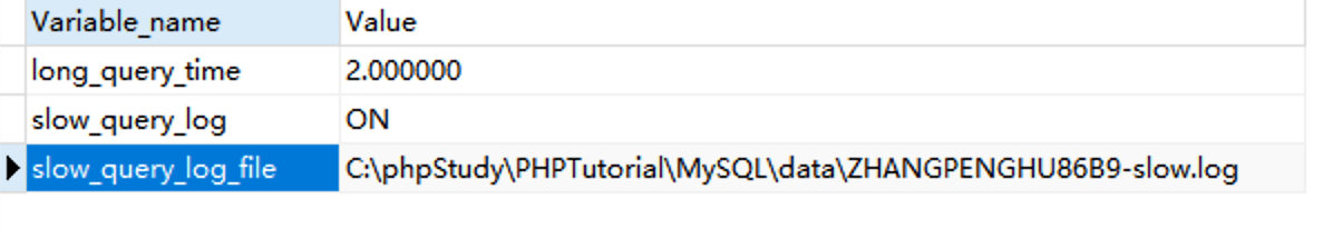 SHOW VARIABLES WHERE Variable_name IN('slow_query_log','long_query_time','slow_query_log_file','log-query-not-using-indexes');
