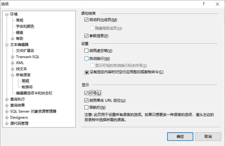 工具->选项->文本编辑器->所有语言->常规->显示->行号 选中它 来源:https://www.cnblogs.com/liyunchuan/p/11394282.html 标签 sqlserver