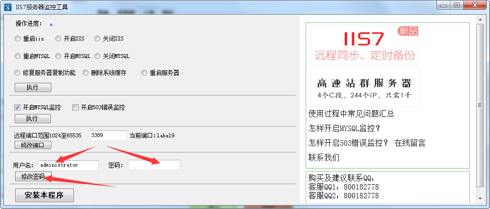 首先可以用iis7服务器监控工具,直接修改用户名和密码,不用再输入很多遍。如下图所示: