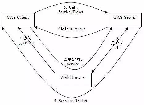 如 上图: CAS Client 与受保护的客户端应用部署在一起,以 Filter 方式保护 Web 应用的受保护资源,过滤从客户端过来的每一个 Web 请求,同 时, CAS Client 会分析 HTTP 请求中是否包含请求 Service Ticket( ST 上图中的 Ticket) ,如果没有,则说明该用户是没有经过认证的;于是 CAS Client 会重定向用户请求到 CAS Server ( Step 2 ),并传递 Service (要访问的目的资源地址)。 Step 3 是用户认证过程,如果用户提供了正确的 Credentials , CAS Server 随机产生一个相当长度、唯一、不可伪造的 Service Ticket ,并缓存以待将来验证,并且重定向用户到 Service 所在地址(附带刚才产生的 Service Ticket ) , **并为客户端浏览器设置一个 Ticket Granted Cookie ( TGC ) **; CAS Client 在拿到 Service 和新产生的 Ticket 过后,在 Step 5 和 Step6 中与 CAS Server 进行身份核实,以确保 Service Ticket 的合法性。