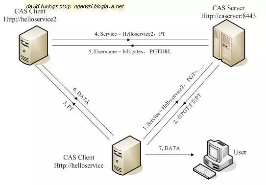 下面为代理应用( helloService )获取 PGT 的过程: (注: PGTURL 用于表示一个 Proxy 服务,是一个回调链接; PGT 相当于代理证; PGTIOU 为取代理证的钥匙,用来与 PGT 做关联关系;)