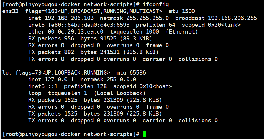 #cd /etc/sysconfig/network-scripts(centos7网卡名ifcfg-ens33/centos7以前是ifcfg-ethX。命令部分也有区别)‘