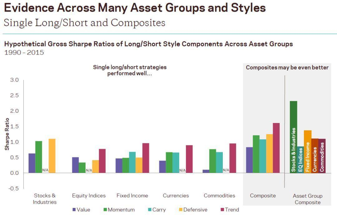 据这么多年的研究和学术论文,我对价值、动量、质量、趋势和利差交易类的策略,比较认同。比如在AQR的投资体系中,就有类似的结构。