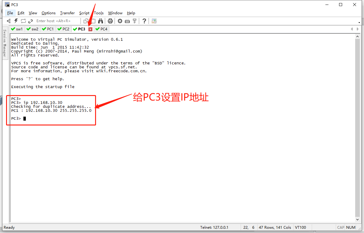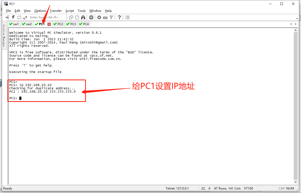 10.给PC1设置IP地址设置IP地址:ip 192.168.10.10