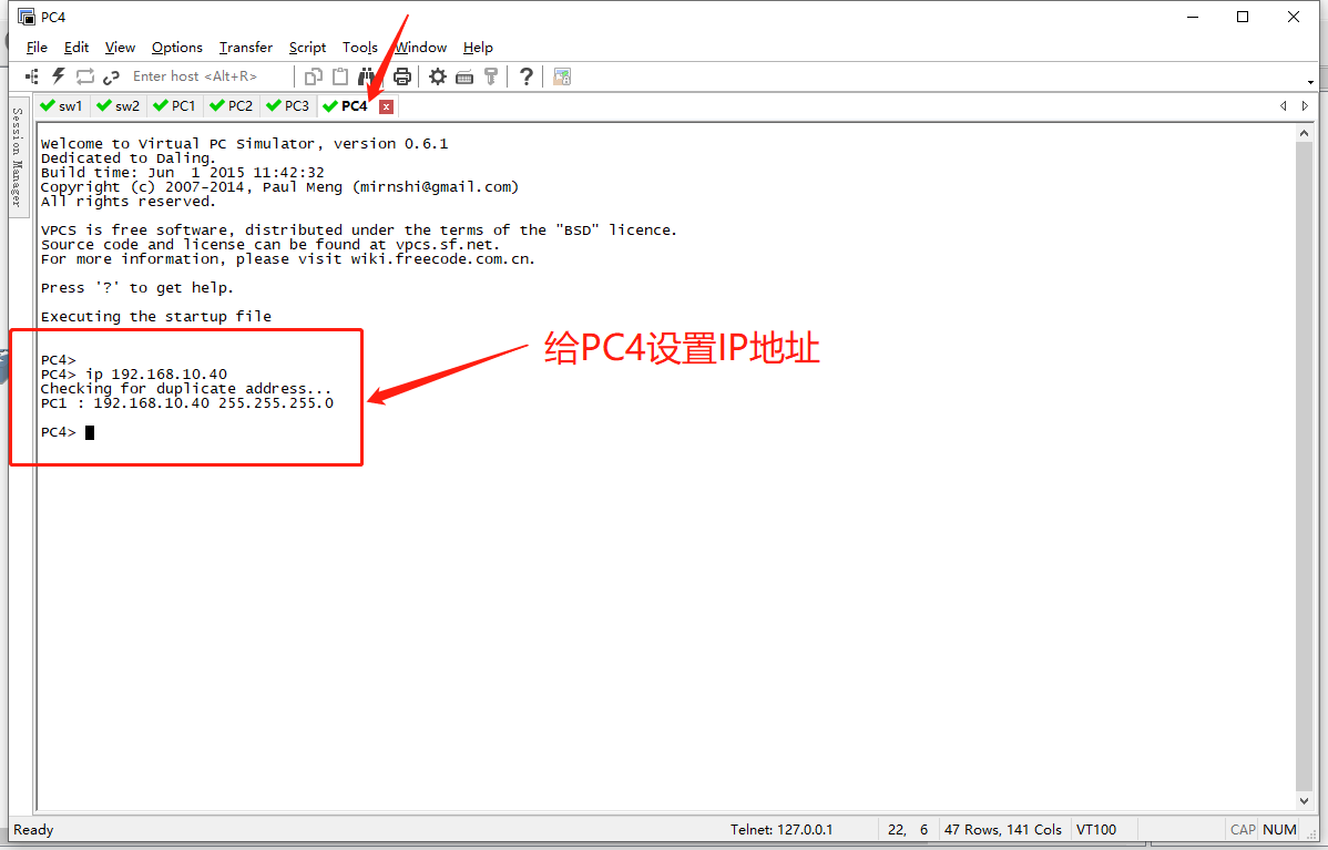 13.给PC4设置IP地址设置IP地址:ip 192.168.10.40